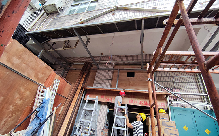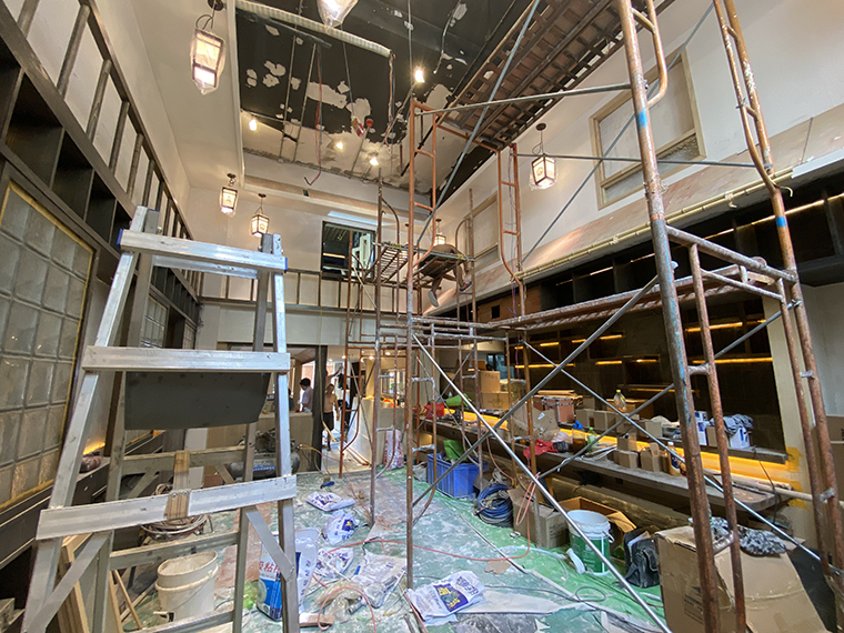 玉椿燒鳥居酒屋首店位于深圳的餐飲網紅高地——車公廟十畝地正對面。門店之前是一家中餐的后廚的全部空間及部分包間,其中一半的面積屬于上一家餐廳自己搭建的二層??臻g結構非常復雜,地面高地不平,尤其是搭建部分的1層,2層實際高度不到2.5米,心理感受很逼窄,這個場地極為考驗品深項目團隊中空間設計師的功力水平。
