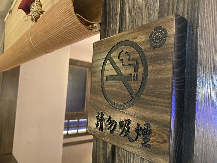為了營造京都風格的空間感受,品深餐飲為玉椿設計定制的家具采用了實木材質,開放漆做舊工藝處理,呈現出一種江戶時代的歷史滄桑質感;與門店的招牌匾額,儲存柜顏色完全一致,顧客使用時候的歷史體驗感更為強烈。