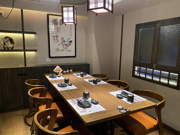 1樓是熱鬧區,二樓則是私密區,安靜區,6個包間,其中3個包間設置為榻榻米結構,滿足一部分顧客對日本料理飲食文化的追求,另外3個包間則使用了中式座椅,畢竟我們服務的絕大部分客人是中國人,還是要以中國人的使用習慣為主。2樓的2個大包間中間使用折疊門,可大可小,可以滿足了周邊客人中一些商務宴請,企業團建,小型會議的用餐需求,包間消費也容易把營業流水做起來。